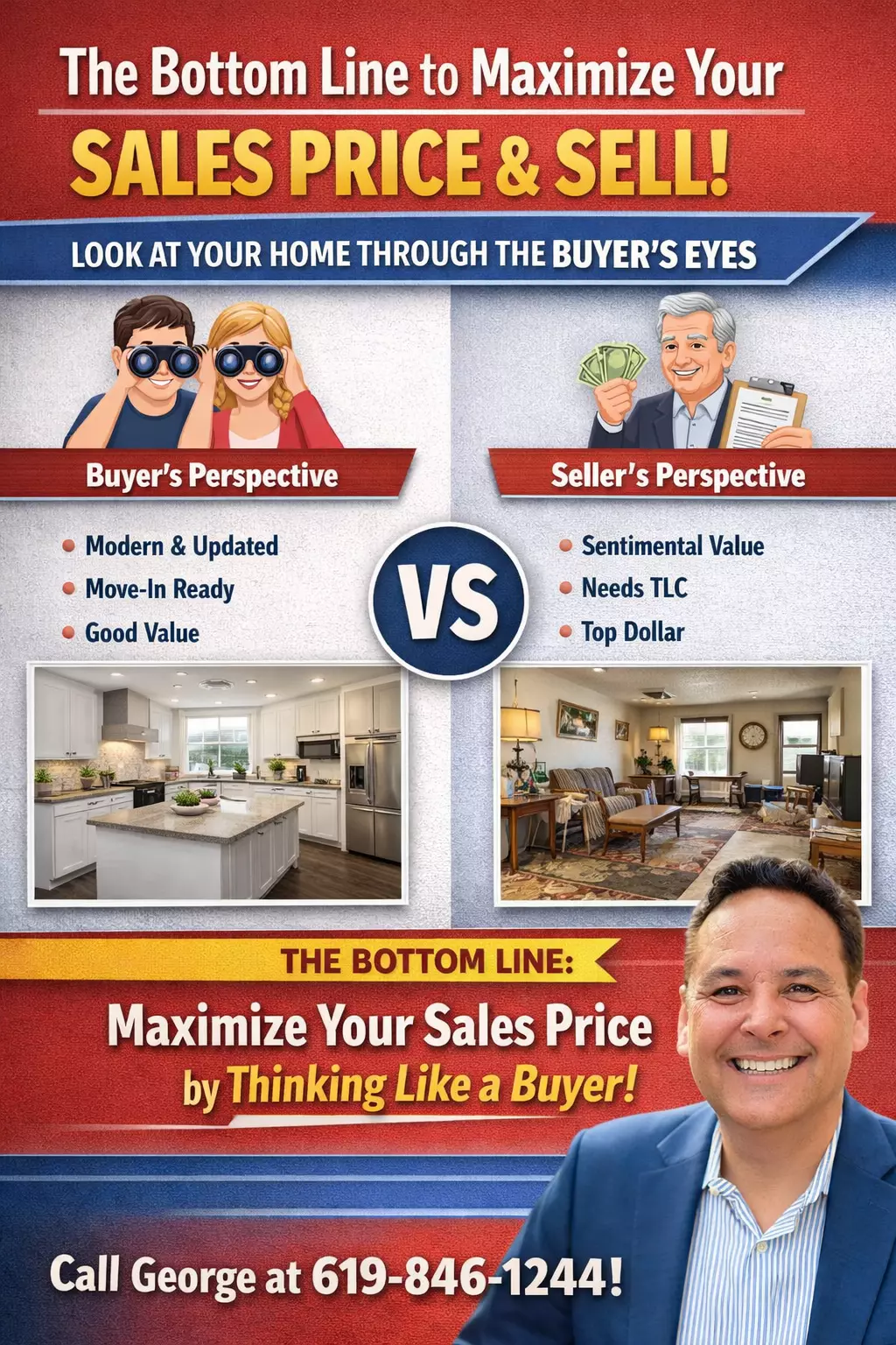 If you would like to see this fresh approach and are realistic and motivated to sell, call or text me, and I'll send you a free analysis customized for your home. George Lorimer at 619-846-1244.